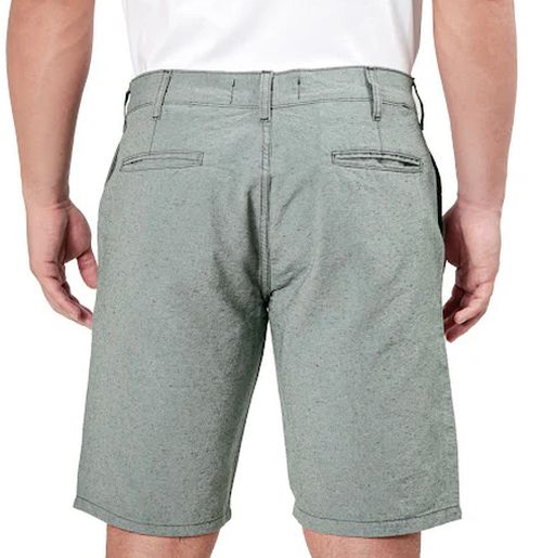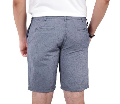 Tem modelagem e acabamento de alfaiataria casual, com cós reforçado e bolsos traseiros com botão fino.