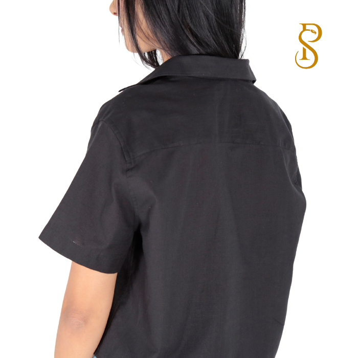 Cropped Social feminino manga curta estilo casual chic, modelagem slim.