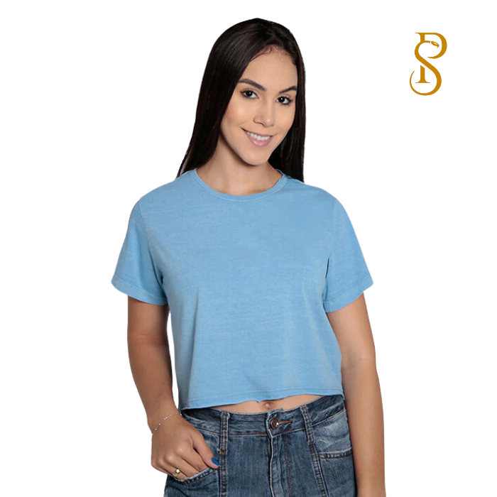 Modelagem cropped soltinha e gola redonda, ideal para o dia a dia.